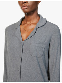 PRODUCT DETAILS - SKIMS stretch-jersey pyjama set - 91% modal, 9% elastane - Button fastening - Top: - Camp collar, long sleeves, one patch pocket at chest, all-over ribbed texture - Bottoms: - Relaxed fit, high rise, straight leg, elasticated drawstring waistband, all-over ribbed texture - Machine wash cold - True to size - Midweight, stretchy Ref: R03806425-S