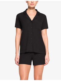 PRODUCT DETAILS - SKIMS woven pyjamas - 91% modal, 9% Spandex - Top: patch pocket, buttoned placket, short sleeves - Shorts: Elasticated waistband - Machine wash cold - True to size Ref: R04247363