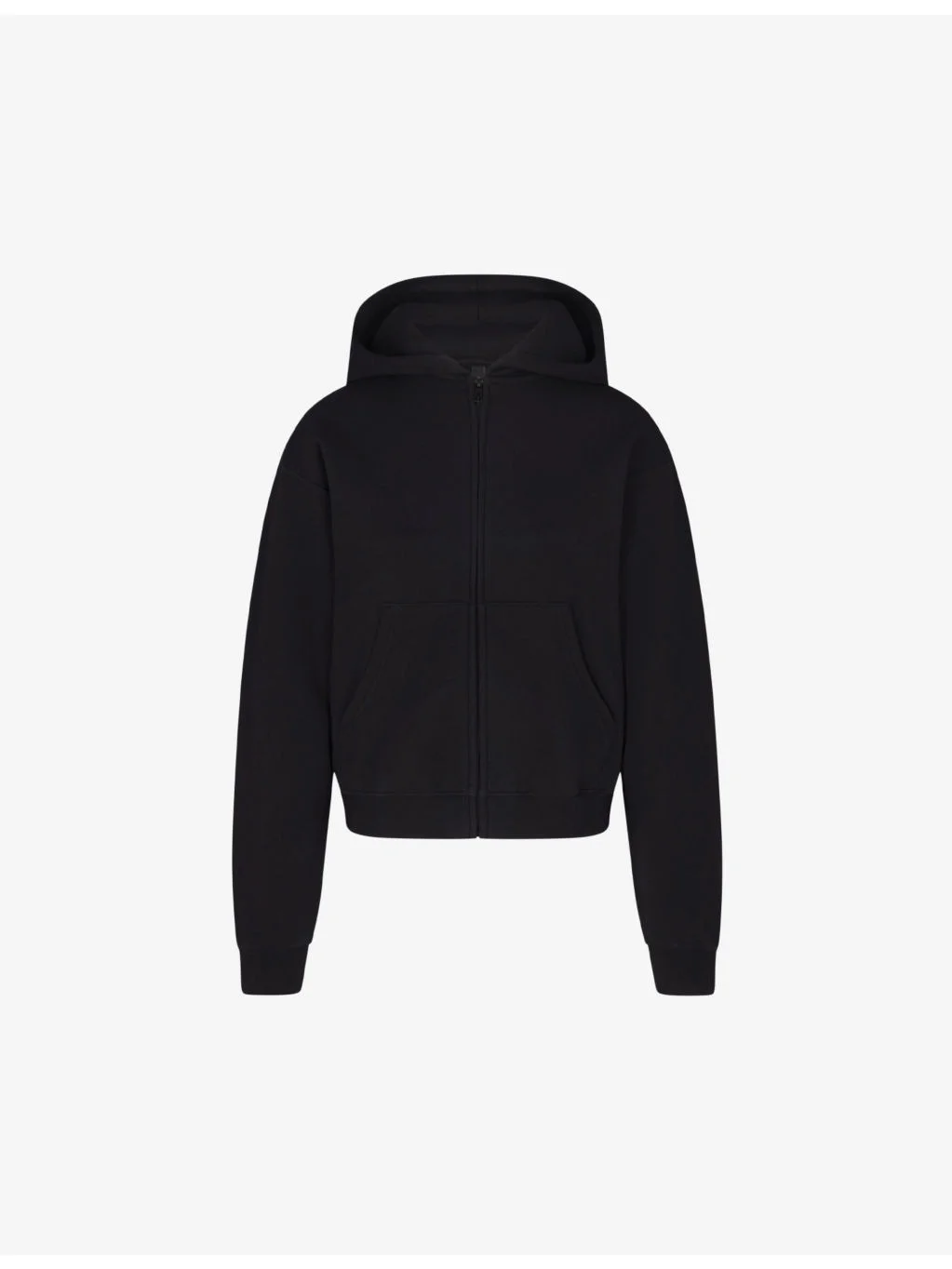 PRODUCT DETAILS - SKIMS cotton-fleece hoody - 70% cotton, 30% polyester - Concealed zip fastening at front - Hood, dropped shoulders, long sleeves, split kangaroo pocket at front, rib trims - Machine wash cold - True to size - Model is 5ft 10in/1.78m and wears a size small - Midweight, non-stretch Ref: R04304574