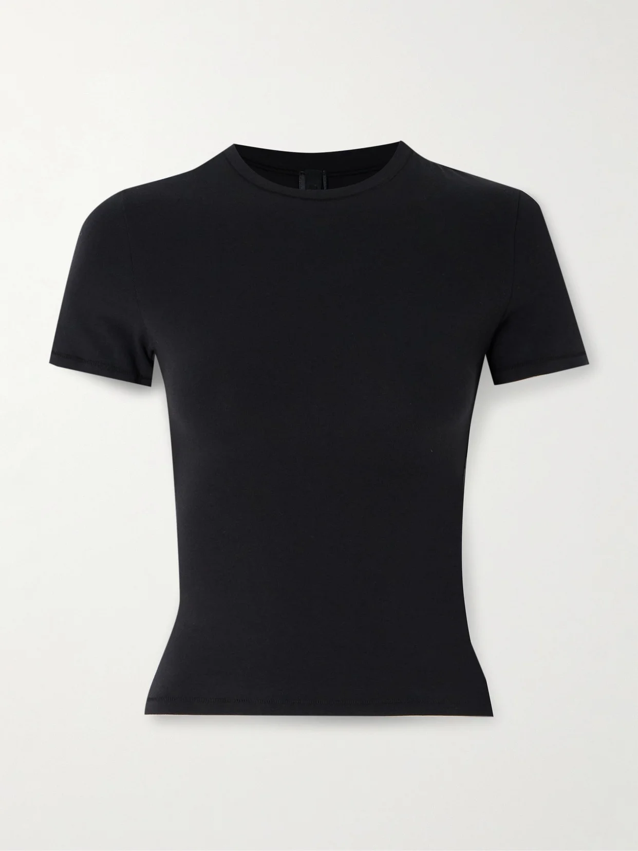 SKIMS' T-shirt is made from stretch-cotton jersey that's so soft and comfortable, you'll never want to take it off. It's cut for a very close fit and will work with everything from tailoring and jeans to track pants.