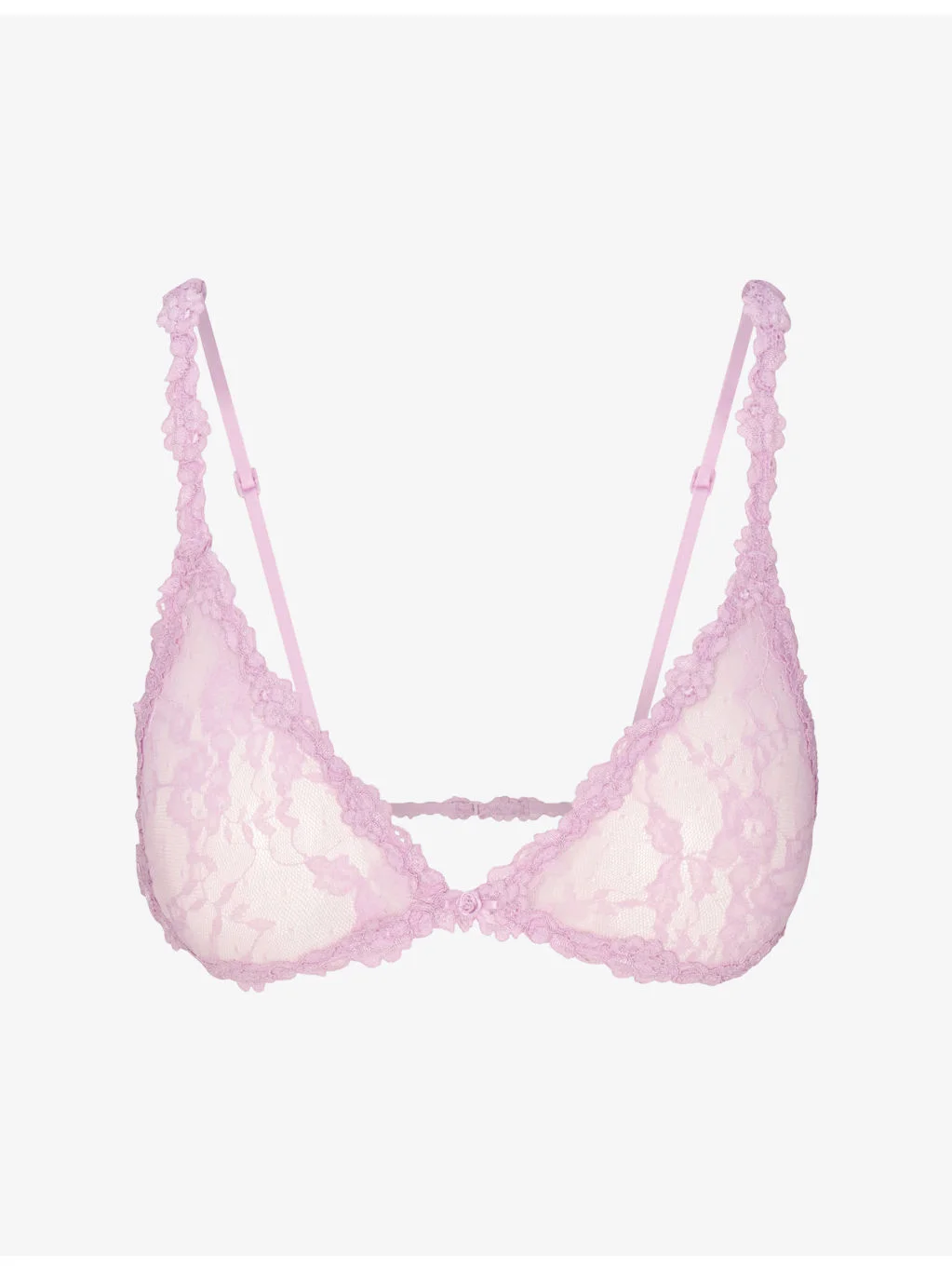 PRODUCT DETAILS - SKIMS stretch-lace bralette - 100% polyamide - Hook-and-eye fastening at back - Triangle shape, adjustable straps, rosette embroidery at front, embroidered lace detailing, moderate coverage - Machine wash cold - True to size - Lightweight, stretchy Ref: R04572179
