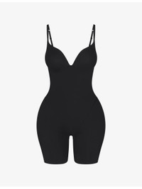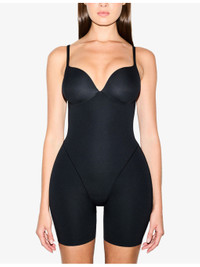 PRODUCT DETAILS - SKIMS bodysuit - 61% polyamide, 39% elastane - Ultimate push-up cups, adjustable straps, embedded foam rear and hip pads, power mesh lining at front for added compression, open gusset, raw hems, mid-thigh length - Hand wash cold - Model is 5ft 11in/1.80m and wears a size small - Midweight, stretchy Ref: R04538075