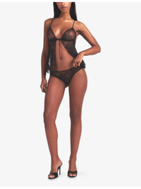 PRODUCT DETAILS - SKIMS lace top - 88% polyester, 12% elastane - Self-tie fastening - Triangle neckline, adjustable rouleau straps, rouleau tie at front, open-front design, all-over floral lace pattern - Hand wash cold - True to size - Lightweight, non-stretch Ref: R04572148