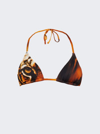 X Roberto Cavalli Triangle Bikini Top Tiger Face Print