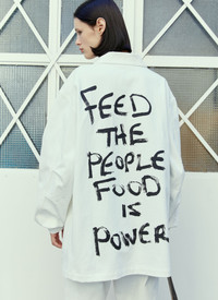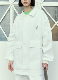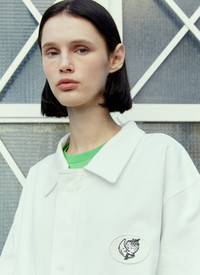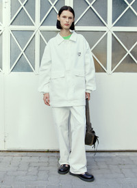 Alastair Mckimm workwear jacket in cotton canvas. - Spread collar - Concealed snap fastening at front - Long sleeves - Snap fastening cuffs - Chest logo patch - Front flap pockets - Rear graphic print - 100% Cotton. Dry clean - Color: White - Code: SHF04C404 WHITE