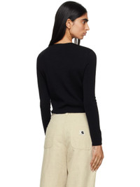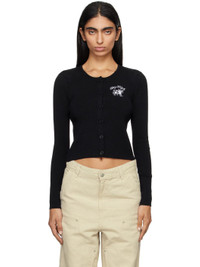 Knit wool cardigan. · Crewneck · Button closure · Jacquard logo graphic at chest · Cropped hem Supplier color: Black 100% wool. Made in Italy 242219F095000