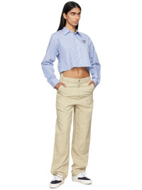 Deadstock cotton poplin shirt. Stripes throughout. · Spread collar · Button closure · Logo graphic embroidered at chest · Cropped hem · Single-button barrel cuffs · Box pleat at back yoke Supplier color: Blue stripe 100% cotton. Made in France 242219F109000