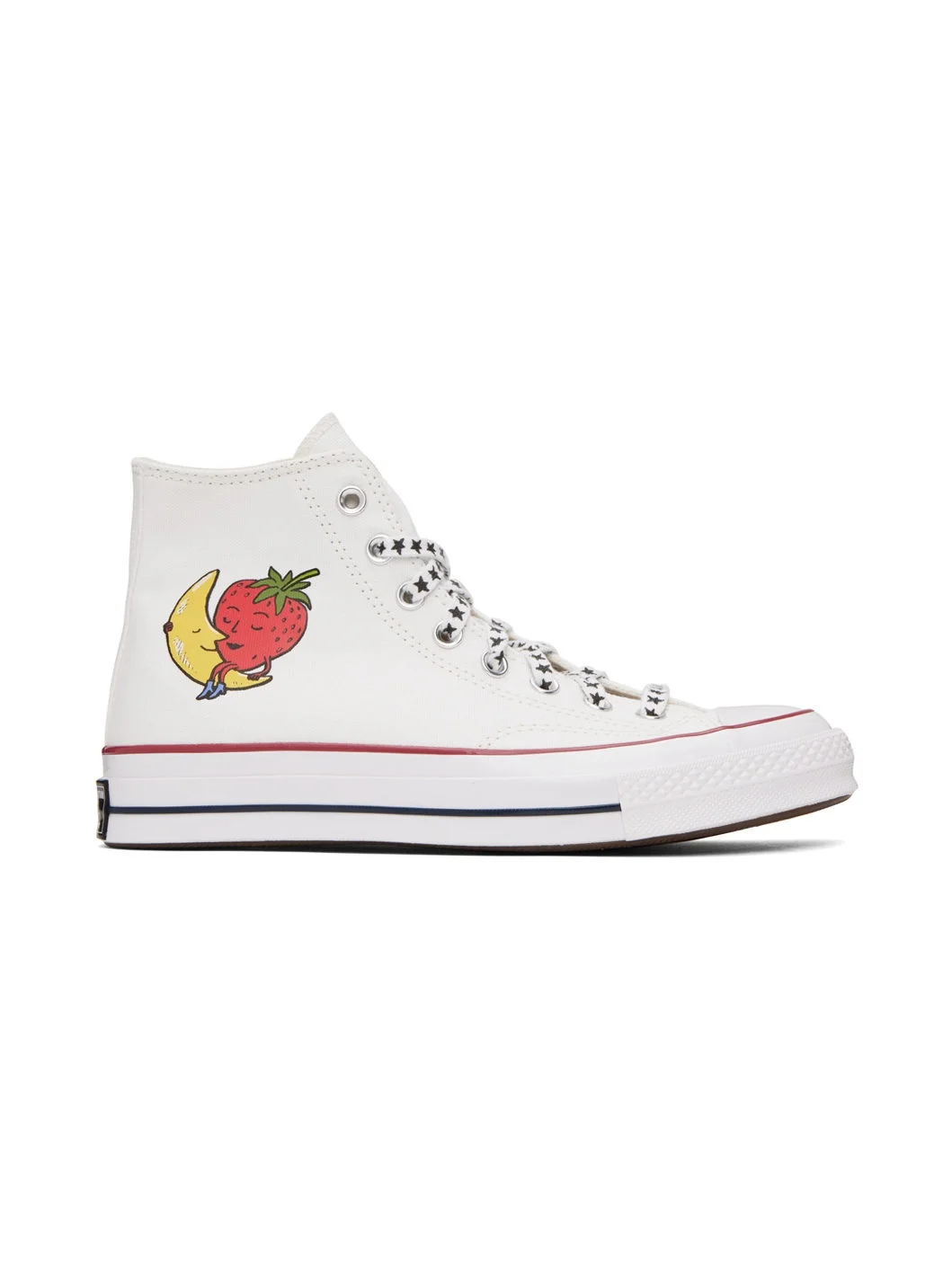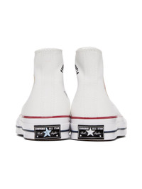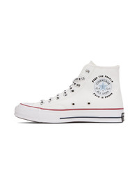 High-top canvas sneakers in white. · Round rubber cap toe · Lace-up closure · Logo bonded at sides · Metal eyelets at inner side · Logo patch at heel counter · Textured rubber midsole · Treaded rubber outsole Part of the Sky High Farm Workwear x Converse collaboration. Supplier color: White Upper: textile. Sole: rubber. Made in Viet Nam 231219F127000