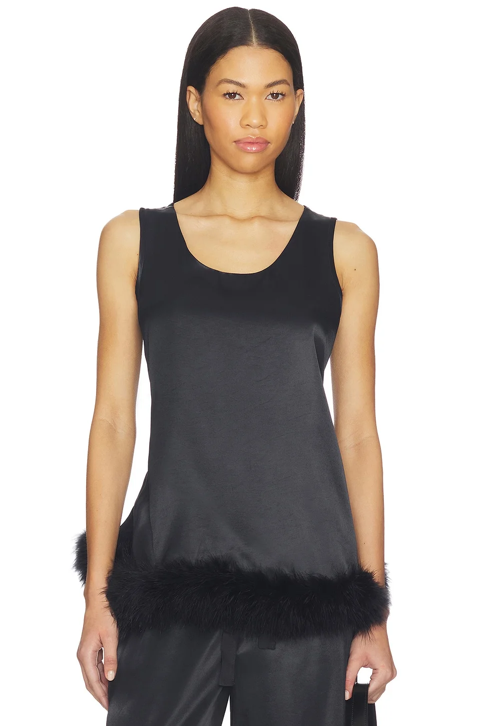 - Self: 100% viscose Trim: 100% turkey feathers - Made in Ukraine - Dry clean only - Pull-on styling - Midweight satin fabric - Turkey feather trim - Item not sold as a set - Revolve Style No. SEPE-WS1 - Manufacturer Style No. BBTP02P002F