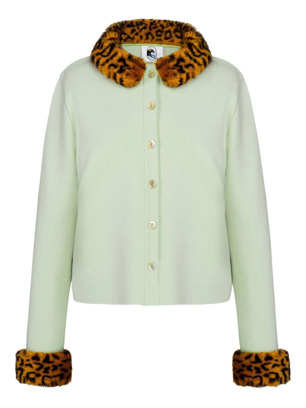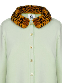 Carmela animal-print collar cardigan Highlights - Light green - Animal print collar - Animal print cuffs - Button fastening - Knitted construction - Long sleeves Imported Composition Outer: Artificial Fur 100%, Viscose 70%, Polyester 30% Lining: Viscose 100% Washing instructions Dry Clean Only