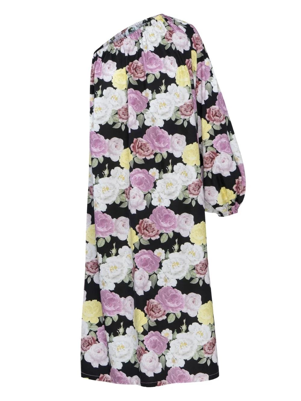 Cha-Cha dress Highlights - Black/multicolour - Elasticated band - One-shoulder - Side slit - Mid-length Imported Composition Cotton 100%