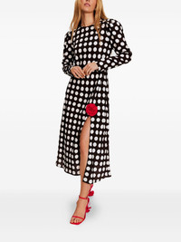 Donna dress Highlights - Black - Rear tie fastening - Side slit - Floral applique - Mid-length Imported Composition Viscose 83%, Nylon 17%