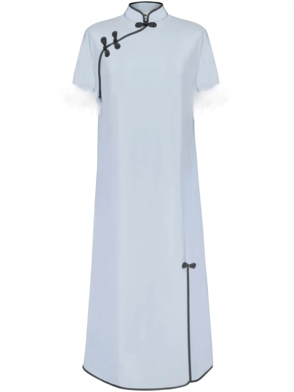 Dragon dress Highlights - Blue - Short sleeves - Feather detailing - Mid-length Imported Composition Viscose 100%, Feather 100%, Polyester 100%