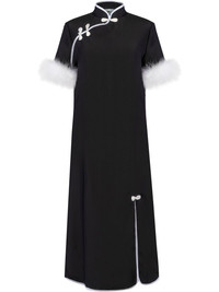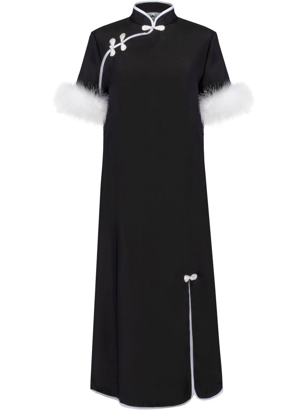 Dragon dress Highlights - Black - Short sleeves - Feather detailing - Mid-length Imported Composition Viscose 100%, Polyester 100%, Feather 100%