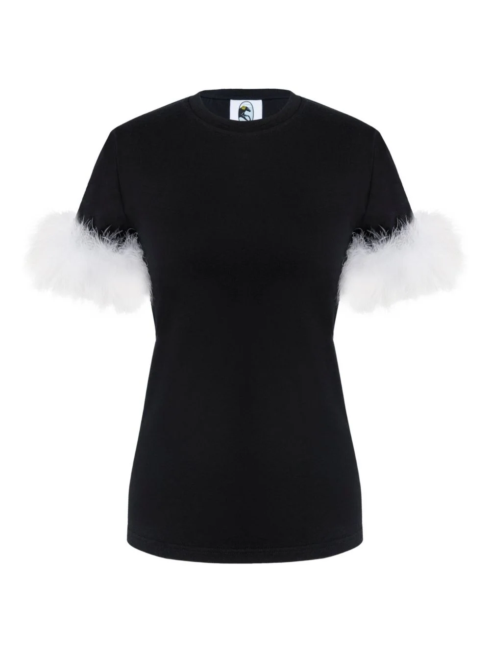 feather-embellished T-shirt Highlights - Black - Feather-trim detailing - Round neck - Short sleeves Imported Composition Feather 100%, Cotton 95%, Lycra 5%