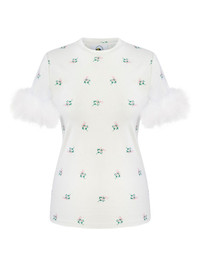 feather-trim T-shirt Highlights - Off-white - Floral-print - Short sleeves - Feather trim on sleeves - Crew neck Imported Composition Cotton 95%, Lycra 5% Washing instructions Machine Wash