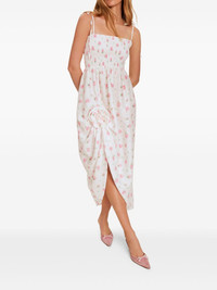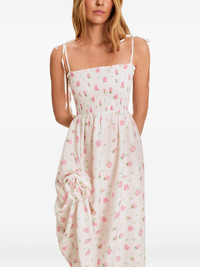 floral-print midi dress Highlights - White - Elasticated band - Square neck - Adjustable spaghetti straps - Draped design Imported Composition Linen/Flax 50%, Viscose 50% Washing instructions Read Manufacturer Guidelines