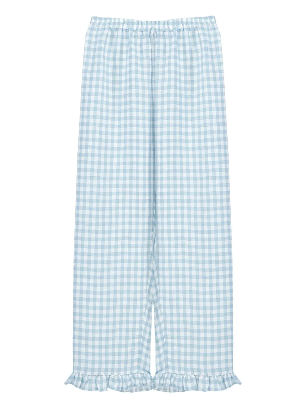 linen-blend trousers Highlights - Light blue - Elasticated waistband - Ruffled hem - Check pattern Imported Composition Linen/Flax 50%, Viscose 50% Washing instructions Dry Clean Only
