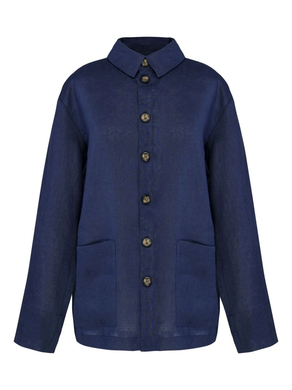 linen shirt Highlights - Navy blue - Front button fastening - Two side patch pockets - Classic collar - Straight hem Imported Composition Organic Linen 100%