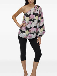 one-shoulder blouse Highlights - Black - One-shoulder - Elasticated trim - Balloon sleeves - All-over floral print Imported Composition Cotton 100%