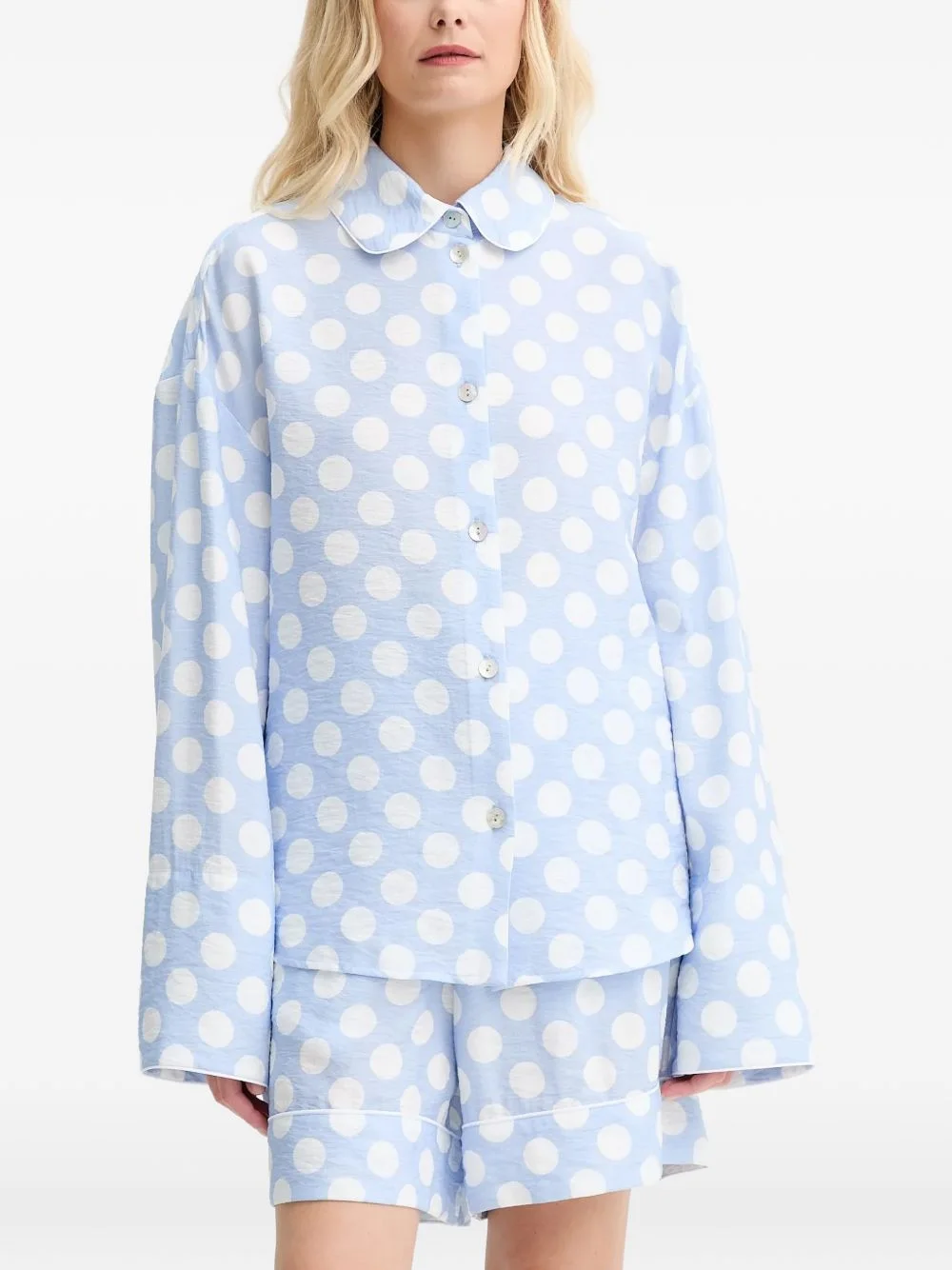 polka-dot shirt and shorts set Highlights - Light blue - Polka dot pattern - Button fastening - Drawstring fastening Imported Composition Polyester 85%, Viscose 83%, Nylon 17%, Cotton 15% Washing instructions Read Manufacturer Guidelines