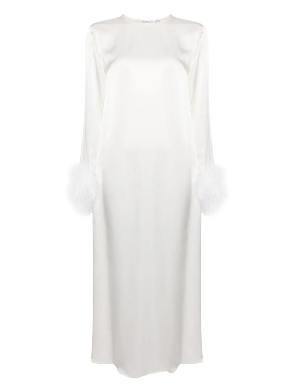 Suzi dress Highlights - White - Ostrich feather - Rear button fastening - Feather detailing - Detachable cuffs - Round neck - Straight hem Imported Composition Viscose 100% Trims: Feather 100%
