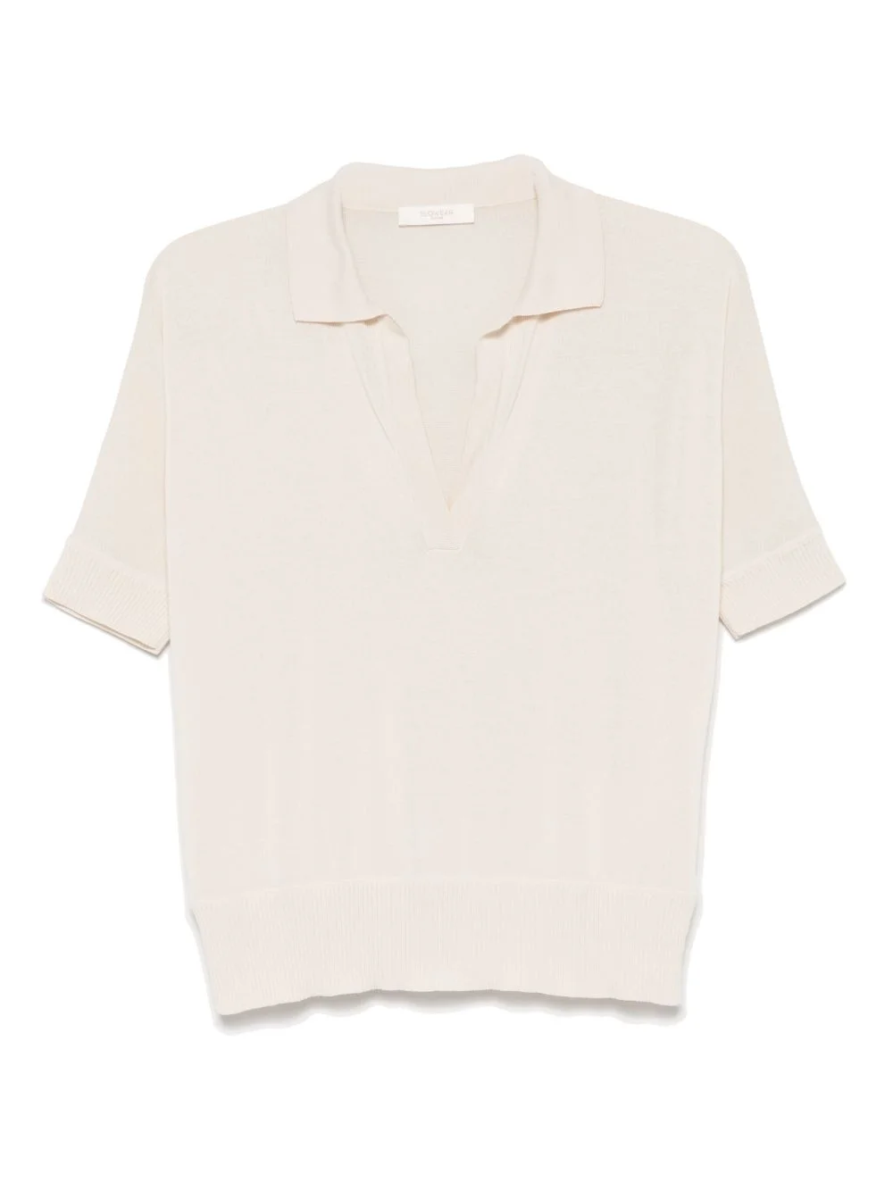 fine-knit T-shirt Highlights - Light beige - Ribbed cuffs and hem - Split neck - Short sleeves Made in Italy Composition Cotton 100% SIZE & FIT Model measurements Height 5 ft 10 in(1.78 m) Bust/Chest 32.67 in(83 cm) Hips 35.43 in(90 cm) Waist 23.22 in(59 cm) FittingInformation Designed to be unstructured, offering a loose fit throughout Made with a lightweight knit, this piece offers some stretch Washing instructions Machine Wash