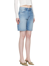 Non-stretch denim shorts. Fading, whiskering, and subtle distressing throughout. · Belt loops · Five-pocket styling · Zip fly · Logo-engraved silver-tone hardware · Contrast stitching in tan Supplier color: Confession 100% cotton. Made in United States 252246F088001