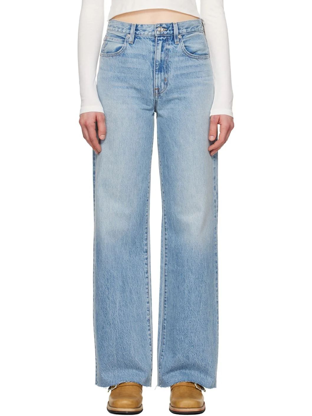 Wide-leg non-stretch denim jeans. Fading, whiskering, and subtle distressing throughout. · High-rise · Belt loops · Five-pocket styling · Zip-fly · Frayed raw edge at cuffs · Logo-engraved silver-tone hardware · Contrast stitching in tan Supplier color: Feel the love 100% cotton. Made in United States 251246F069001