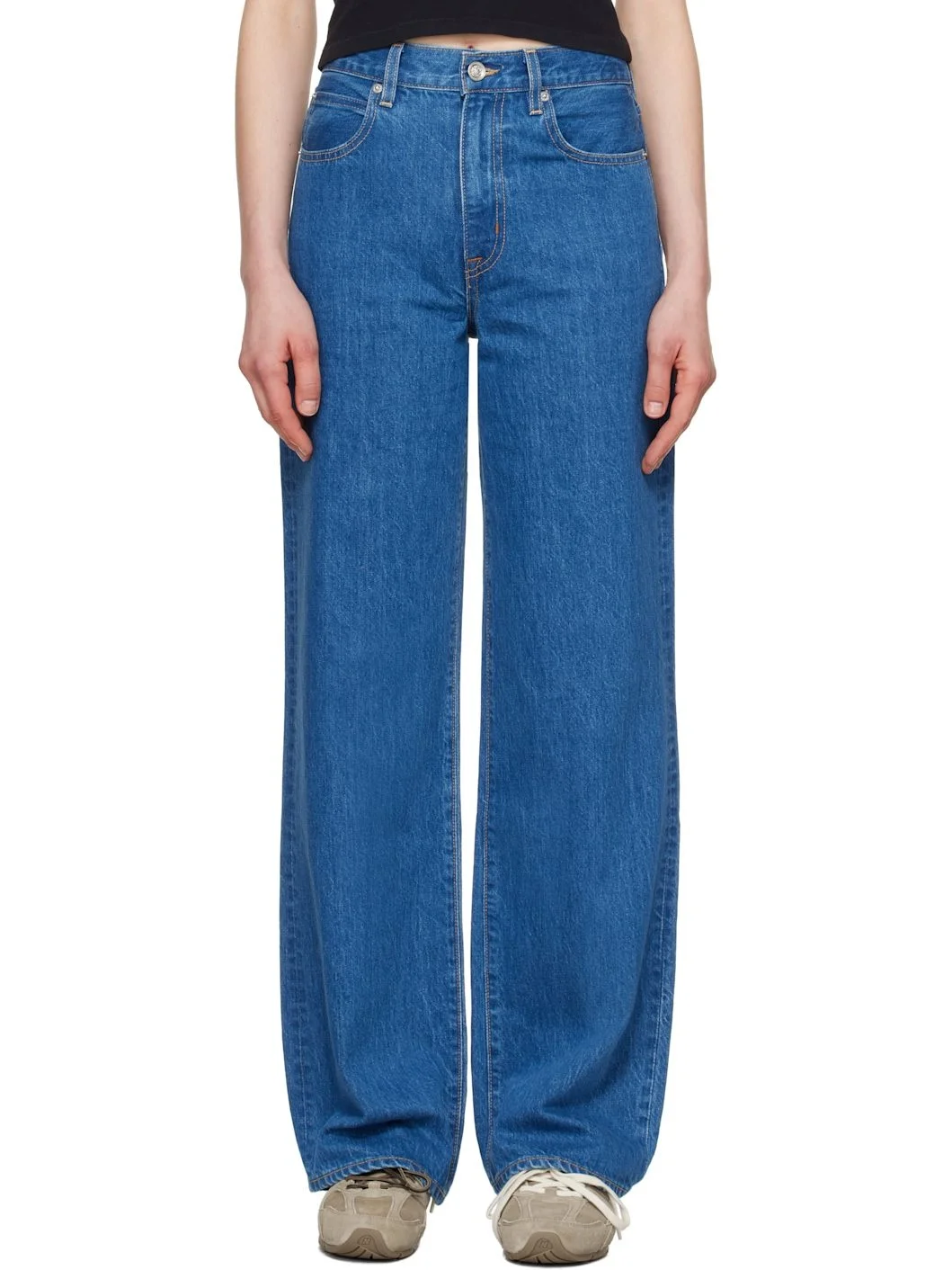 Wide-leg non-stretch denim jeans. Fading throughout. · High-rise · Belt loops · Five-pocket styling · Zip-fly · Logo-engraved silver-tone hardware · Contrast stitching in tan Supplier color: Freedom 100% cotton. Made in United States 251246F069008