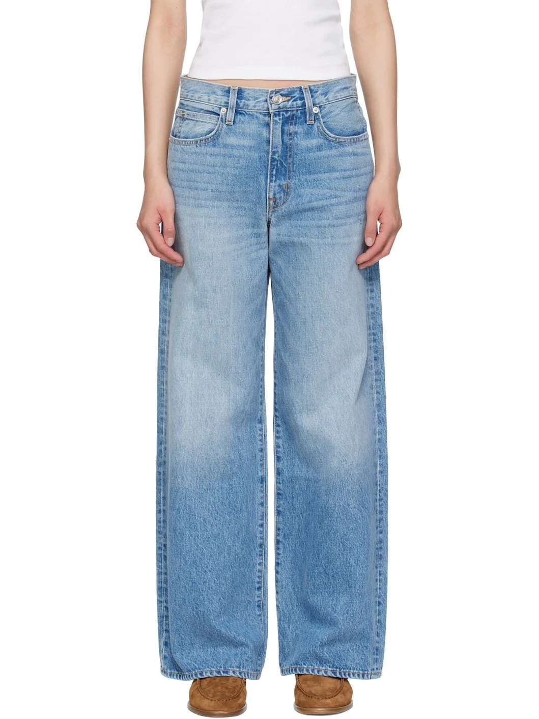 Non-stretch regenerative cotton denim jeans. Fading, whiskering, and subtle distressing throughout. · Wide-leg · Mid-rise · Belt loops · Five-pocket styling · Zip fly · Pen slot at coin pocket · Logo-engraved silver-tone hardware · Contrast stitching in tan Supplier color: Diamond in the rough 100% cotton. Made in United States 252246F069007