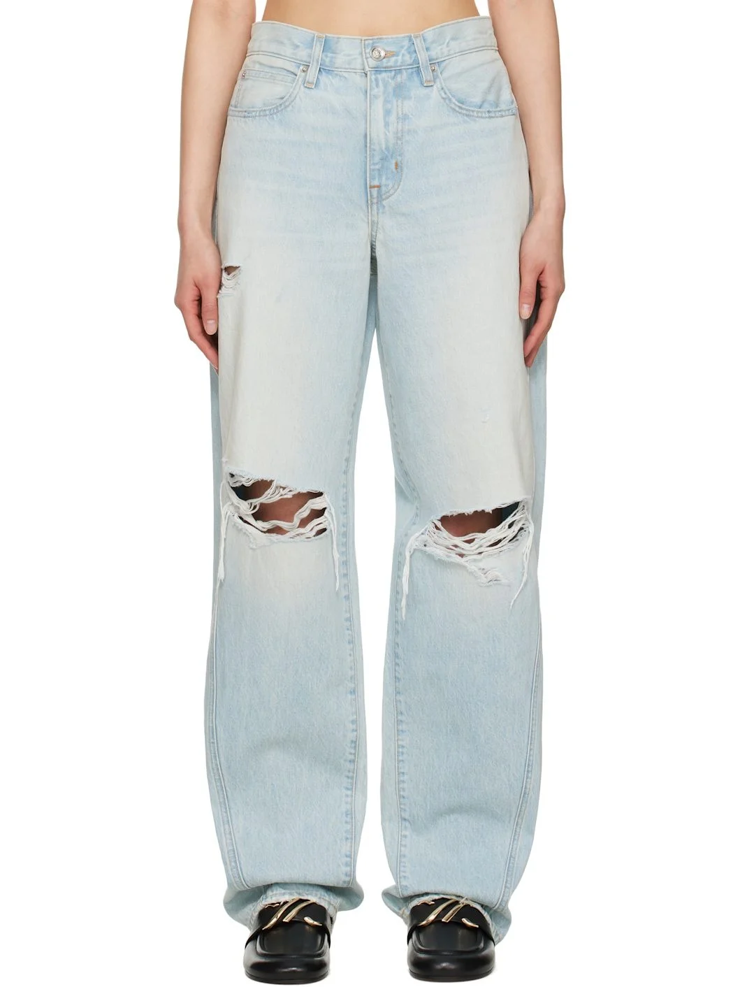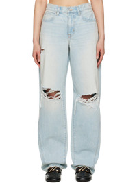 Loose-fit non-stretch denim jeans. Fading and whiskering throughout. · Low-rise · Belt loops · Five-pocket styling · Zip fly · Rip at knees · Curved outseams · Logo-engraved silver-tone hardware · Contrast stitching in tan Supplier color: Heartbreak hotel 100% cotton. Made in United States 251246F069009