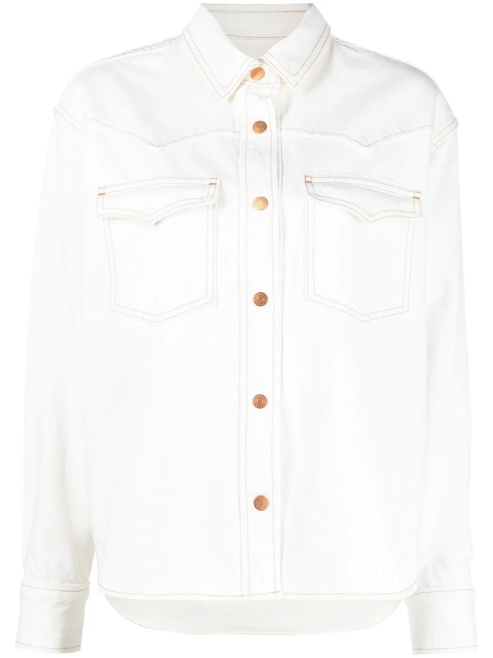 button-down denim jacket Highlights - White - Cotton - Button-down collar - Long sleeves - Two chest patch pockets Made in United States Composition Cotton 100% SIZE & FIT Model measurements Height 5 ft 10 in(1.77 m) Bust/Chest 34.64 in(88 cm) Hips 35.43 in(90 cm) Waist 24.8 in(63 cm)