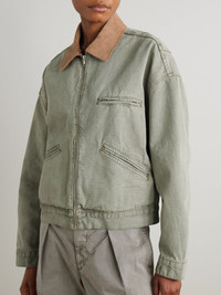 Camden Garage corduroy-trimmed cotton-canvas jacket Sage green