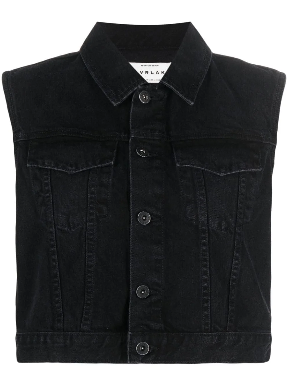 Caroline spread-collar denim vest Highlights - Black - Cotton - Spread collar - Front button fastening - Sleeveless - Two chest flap pockets - Straight hem Made in United States Composition Cotton 100% SIZE & FIT Model measurements Height 5 ft 11 in(1.8 m) Bust/Chest 31.49 in(80 cm) Hips 36.61 in(93 cm) Waist 24.4 in(62 cm) FittingInformation Designed for a slim fit that sits just away from the body offering a close yet comfortable fit Sturdy and hard-wearing, this denim piece offers no stretch This piece fits true to size – take your usual size