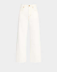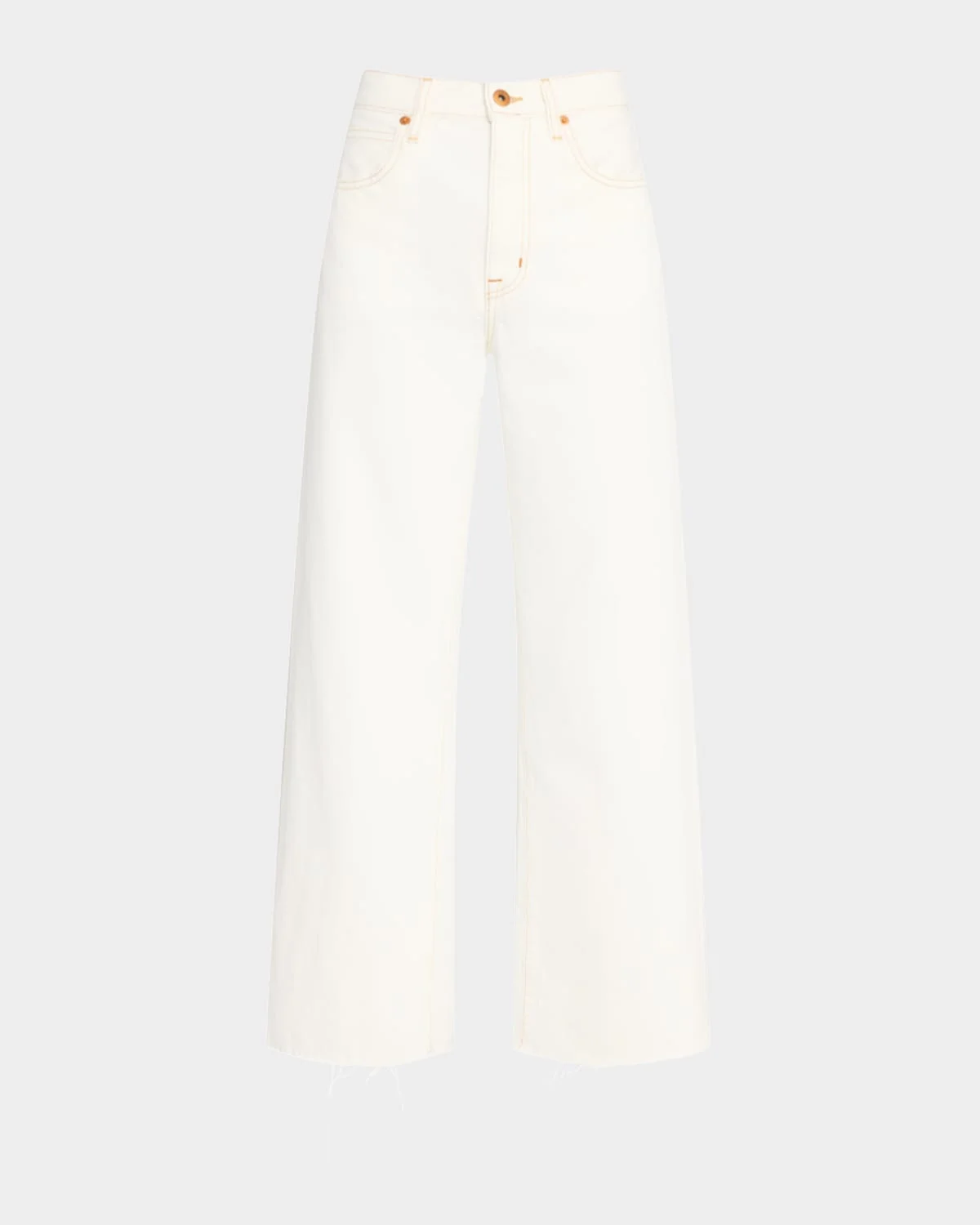 - SLVRLAKE "Grace" jeans featuring a raw hem in crisp white denim - Approx. 11.5" rise - High rise - Five-pocket style - Wide legs - Cropped length - Button/zip fly; belt loops - Cotton/elastane - Machine wash cold - Made in USA