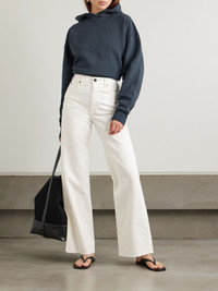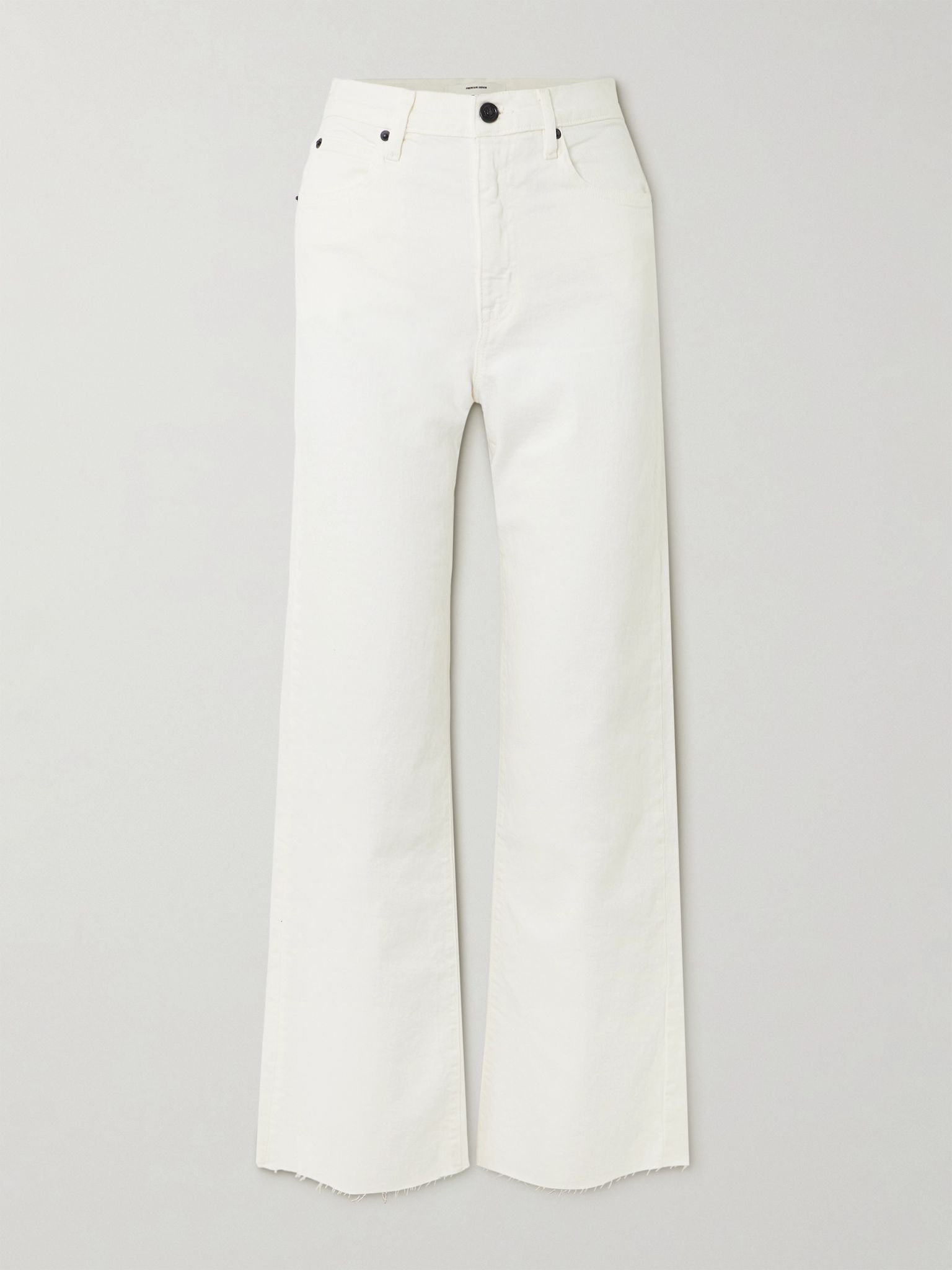 SLVRLAKE's designs channel the laid-back cool of its home city, Los Angeles. Made from white denim, these 'Grace' jeans have a high rise and wide legs with frayed hems. Wear yours with a graphic tee and sneakers or a blazer and ankle boots. Responsible Craftsmanship. This product promotes artisanal skills and a brand that invests in communities and adheres to fair-trade principles. Find out more about our NET SUSTAIN criteria here. Size & Fit - Fits true to size, take your normal size - High-rise, designed for a wide-leg fit - Mid-weight, non-stretchy fabric - Size 26 jeans have an inside leg of 31"/ 81cm Model measurements: - Bust: 85cm/ 33” - Waist: 66cm/ 26” - Hip: 92cm/ 36” Details & Care - White denim - Button and concealed zip fastening at front - 98% cotton, 2% elastane - Machine wash