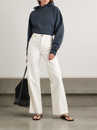 EDITORS'NOTES SLVRLAKE's designs channel the laid-back cool of its home city, Los Angeles. Made from white denim, these 'Grace' jeans have a high rise and wide legs with frayed hems. Wear yours with a graphic tee and sneakers or a blazer and ankle boots. Responsible Craftsmanship. This product promotes artisanal skills and a brand that invests in communities and adheres to fair-trade principles. Find out more about our NET SUSTAIN criteria here. SIZE & FIT Model measurements: - Fits true to size, take your normal size - High-rise, designed for a wide-leg fit - Mid-weight, non-stretchy fabric - Size 26 jeans have an inside leg of 31"/ 81cm - Bust: 85cm/ 33” - Waist: 66cm/ 26” - Hip: 92cm/ 36” DETAILS & CARE - White denim - Button and concealed zip fastening at front - 98% cotton, 2% elastane - Machine wash