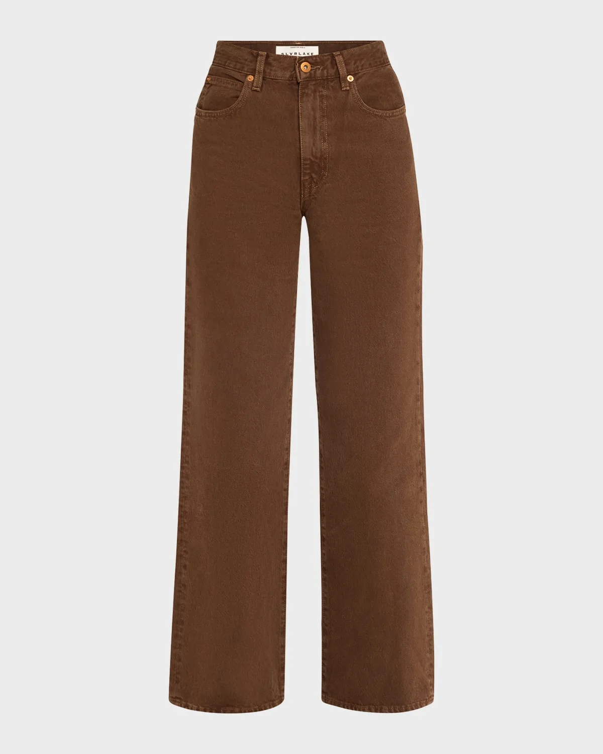 SLVRLAKE "Grace" pants in soft twill. Approx. 12"L rise; 21"L leg opening; 32"L inseam. Button/zip fly; belt loops. Fivepocket style. Straight legs. Rawedge hem. Full length. Cotton. Made in USA of imported material.