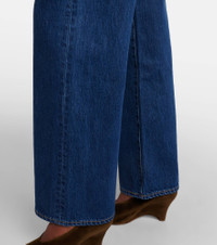 Perfection in every pair: Slvrlake goes beyond the basics with its quality-first approach to denim. The Grace jeans are crafted from pure cotton denim and feature a classic wide-leg silhouette. Product Details - Material: 100% cotton - Care instructions: machine wash cold - Made in the USA - Color: blue - Designer color name: Evermore - Belt loops - Closure: zipper fly, button fastening - Pockets: five pockets - Item number: P01115989 Size & Fit - Fits small to size - we recommend trying one size larger - Non-stretchy fabric - Wide-leg - High-rise - The model seen in the picture is 178cm-5'10" and wearing a size 27