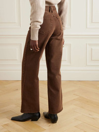 EDITORS'NOTES SLVRLAKE's 'Grace' jeans come in a brown shade the brand calls 'Northern Cedar'. They've been made locally in LA from denim in a retro high-rise, wide-leg shape. Responsible Craftsmanship. This product promotes artisanal skills and a brand that invests in communities and adheres to fair-trade principles. Find out more about our NET SUSTAIN criteria here. SIZE & FIT Model measurements: - Fits true to size, take your normal size - High-rise, cut for a wide-leg fit - Mid-weight, non-stretchy fabric - Size 25 jeans have an inside leg of 31.1"/ 79cm - Model is 177cm/ 5'10" and is wearing a size 25 - Bust: 79cm/ 31" - Waist: 61cm/ 24" - Hip: 89cm/ 35" DETAILS & CARE - Brown denim - Button and concealed zip fastening at front - 100% cotton - Machine wash - Designer wash: Northern Cedar