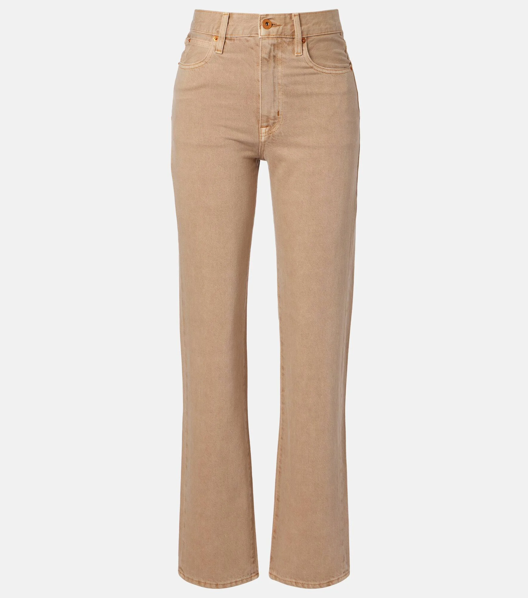 Perfection in every pair: Slvrlake goes beyond the basics with its quality-first approach to denim. The London jeans are a straight-leg pair with a high-rise waistline, rendered in a beige hue. Product Details - Material: 100% cotton - Care instructions: machine wash cold - Made in the USA - Color: beige - Designer color name: Sun Valley - Belt loops - Closure: zip and button fastening - Pockets: five pockets - Item number: P01153791 Size & Fit - Fits small to size - we recommend trying one size larger - Non-stretchy fabric - Straight leg - Mid-rise - The model seen in the picture is 178cm-5'10" and wearing a size 27
