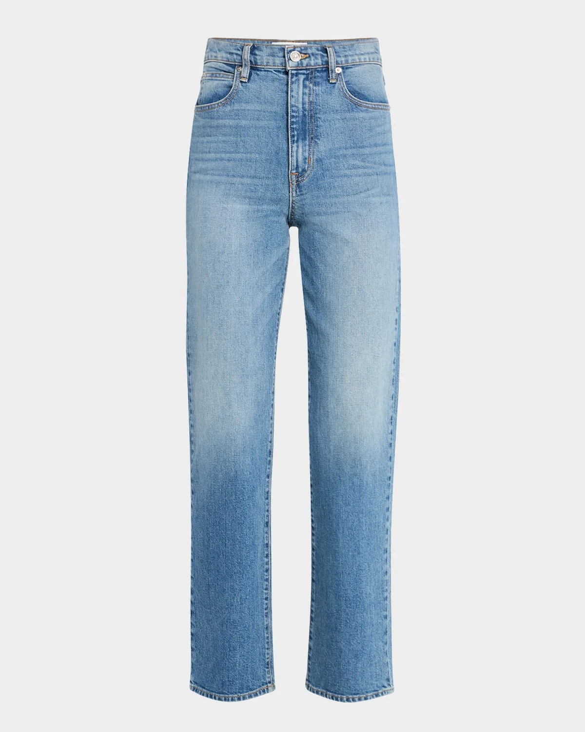 - SLVRLAKE "London" jeans in stretch denim. - High rise. - Five-pocket style. - Straight legs. - Button/zip fly; belt loops. - Cotton/spandex. - Machine wash. - Made in USA of imported material.
