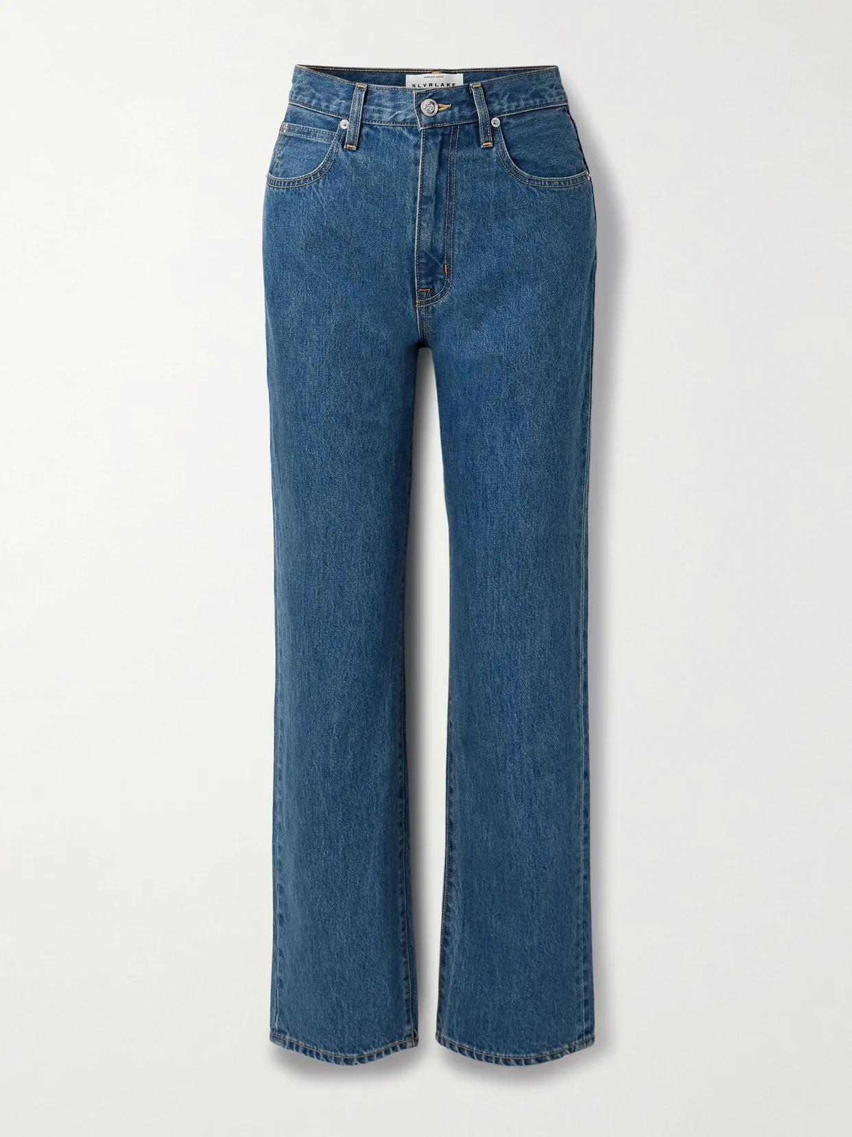It was a pair of baby-blue 'London' jeans that started it all: Louise Edgley founded SLVRLAKE to create her perfect design and it soon became the favorite of plenty others. Defined by an ultra high waist and straight legs, this version is dyed a classic 'LA Woman' blue that will only get better with time. Lower-Impact Materials. This product is made using at least 50% lower-impact materials or ingredients. Find out more about our NET SUSTAIN criteria here.