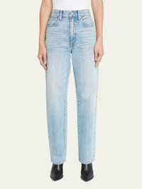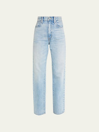 SLVRLAKE "London" jeans in denim. High rise. Fivepocket style. Straight legs. Ankle length. Button/zip fly; belt loops. Cotton/spandex. Made in USA.