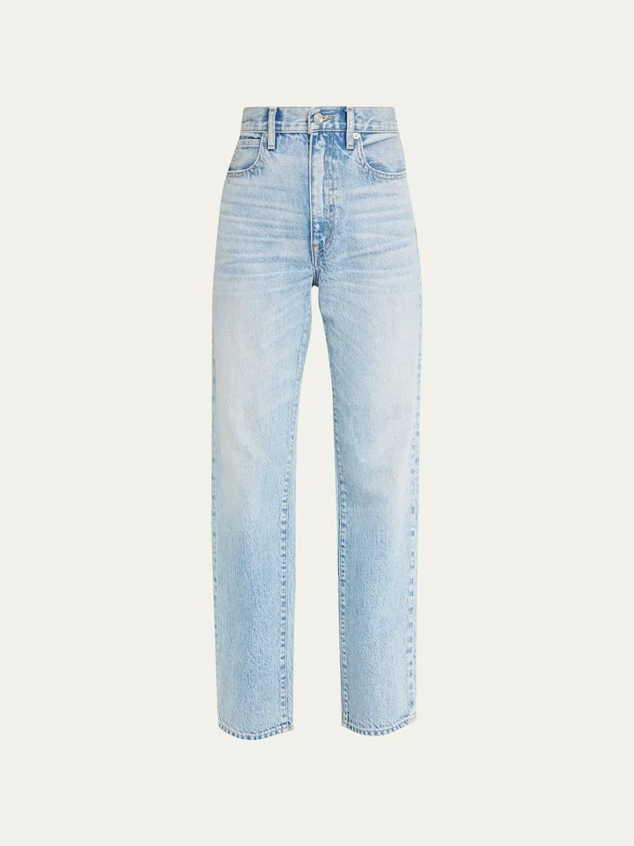 SLVRLAKE "London" jeans in denim. High rise. Five-pocket style. Straight legs. Ankle length. Button/zip fly; belt loops. Cotton/spandex. Made in USA. Online Inquiries: BGS21_T4B1S| Store Inquiries: #3657766