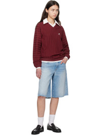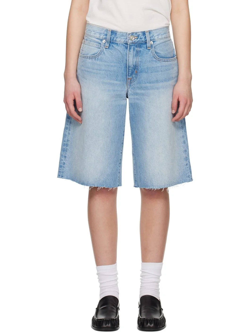 Wide-leg non-stretch denim shorts. Fading and whiskering throughout. · Low-rise · Belt loops · Five-pocket styling · Zip fly · Frayed edge at cuffs · Logo-engraved silver-tone hardware · Contrast stitching in tan Supplier color: She's the one 100% cotton. Made in United States 251246F088000