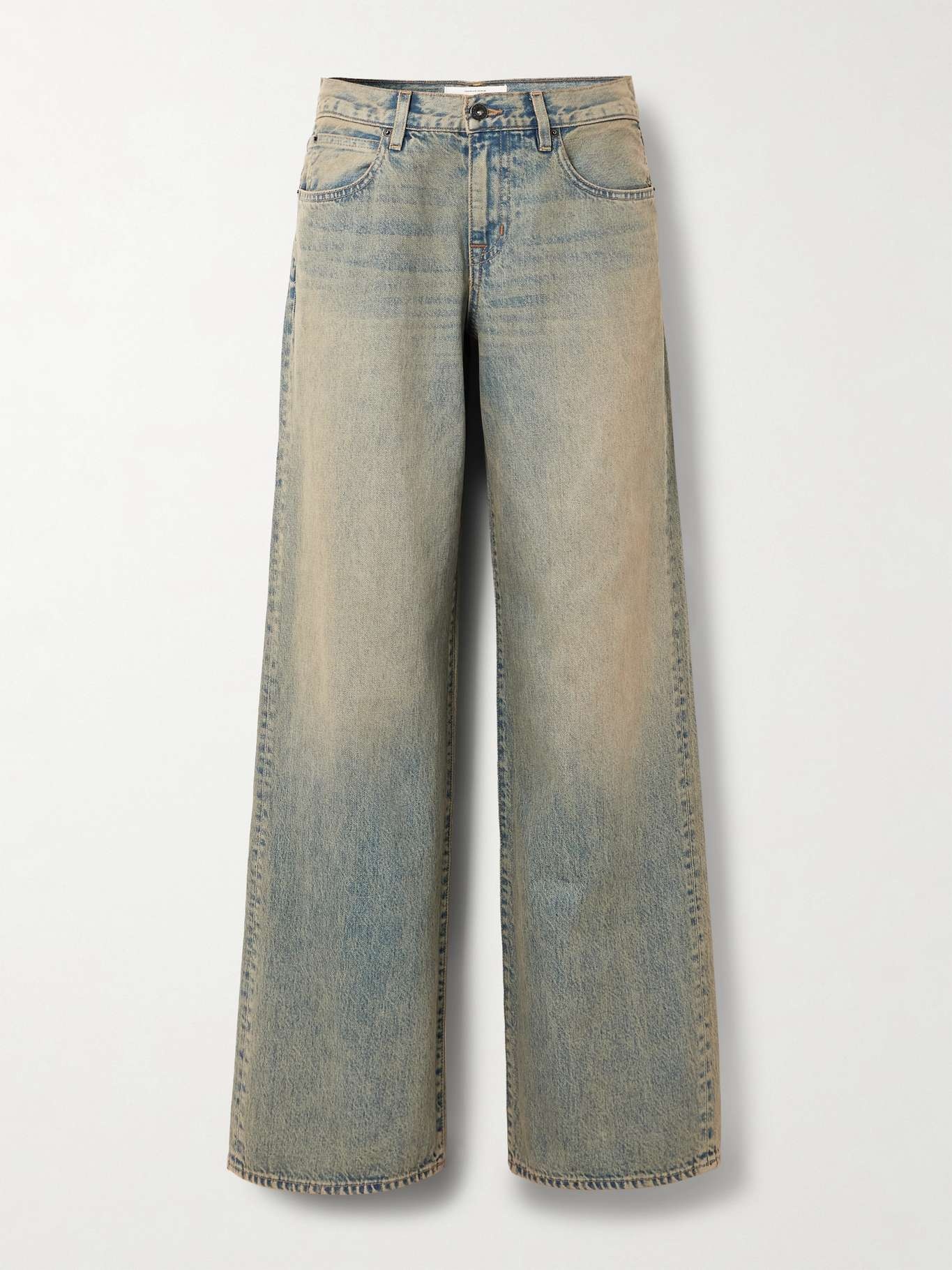 EDITORS'NOTES SLVRLAKE's 'Mica' jeans sit low on the waist and have a wide-leg shape that feels so cool and relaxed. This iteration has been handmade in LA from pure cotton in a faded 'Indigo Rust' wash. Wear yours with a tank or cropped tee. SIZE & FIT Model measurements: - Fits true to size, take your normal size - Low-rise, cut for a wide-leg fit - Mid-weight, non-stretchy - Size 26 jeans have an inside leg of 34"/ 87cm - Model is 177cm/ 5'10" and is wearing a size 26 - Bust: 81cm/ 32" - Waist: 68cm/ 27" - Hip: 94cm/ 37" DETAILS & CARE - Blue denim - Button and concealed zip fastening at front - 100% cotton - Machine wash - Designer wash: Indigo Rust