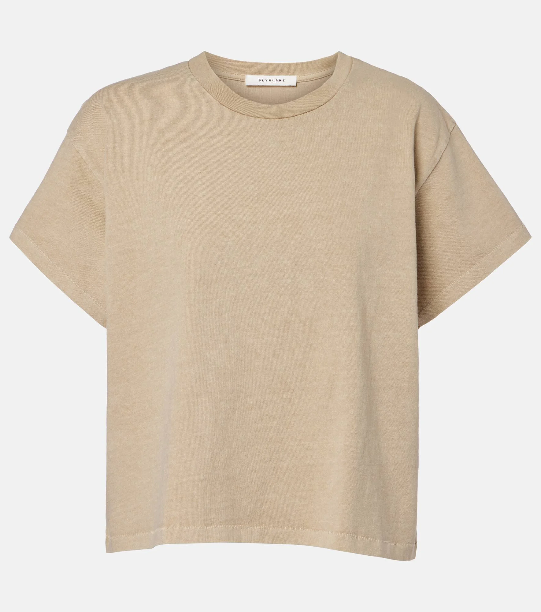 Perfection in every pair: Slvrlake goes beyond the basics with its quality-first approach to denim. The Suare T-shirt is a classic design crafted from cotton jersey and featuring a boxy silhouette. Product Details - Material: 100% cotton - Care instructions: machine wash cold - Made in the USA - Color: beige - Designer color name: Sand Dune - Item number: P01115974 Size & Fit - True to size - Dropped shoulders - Designed for a loose fit - Slightly stretchy fabric - Falls to the hip - The model seen in the picture is 178cm-5'10" and wearing a size XS