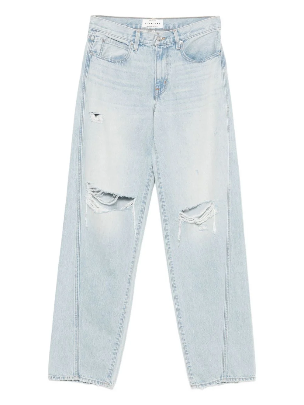 twisted-seam cotton jeans Highlights - Blue - Distressed detailing - Twisted seam - Straight leg - Five pockets Made in United States Composition Cotton 100% SIZE & FIT Model measurements Height 5 ft 9 in(1.75 m) Bust/Chest 32.67 in(83 cm) Hips 36.22 in(92 cm) Waist 24.8 in(63 cm) Washing instructions Machine Wash